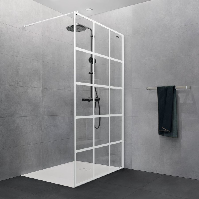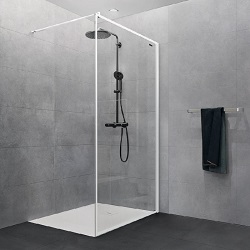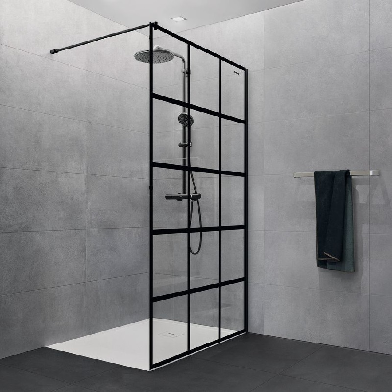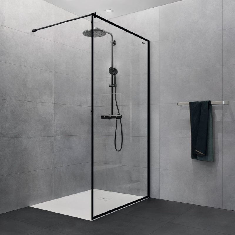 Душевые ограждения DUSCHOLUX Allegra Walk-in. Теперь для просторного классического решения душевой кабины можно выбрать белый или черный стеновой профиль. А черная рама или сетчатая трафаретная печать позволяют создавать новые акценты в ванной комнате.