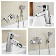 Ассортимент HANSA: смесители для раковин, душевых и ванн, душевые системы, душевые панели, термостаты, кухонные сместели, электронные смесители, арматура для ванных комнат и др.
