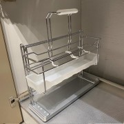 Выдвижная корзина LEICHT для чистящих средств на телескописческих направляющих, встраивается в нижние шкафы под мойку монтируется на дно по месту, размер 390*460*150 мм, цвет хром. (PMZ)