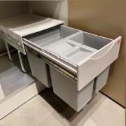 Встраиваемое ведро для мусора LEICHT для установки в нижние шкафы под мойку, монтаж на дно шкафа по месту, с выдвижным ящиком на по0лную глубину, с 3 отдельными ёмкостями для мусора 1х18 л и 2х8,5 л, размер 350х320х480 мм, серый, пластик (EA5)
