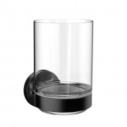 Стакан EMCO ROUND настенный, хрустальное стекло прозрачное, 69х116,5х89,5 мм, возможен монтаж без отверстий с помощью клеевого набора арт. 4378 000 00, черный матовый (432013300)
