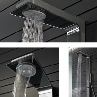 Более комфортабельным душ вряд ли может быть: благодаря множеству интеллектуальных функций и футуристическому дизайну HANSA SMARTSHOWER точно избалует Вас. Основным элементом, в том числе и визуальным, является плоская угловая панель со сверхблагородной фронтальной пластиной из зеркального или антрацитно-черного стекла. Здесь интегрированы все функции - управление массажной душевой головкой, ручным душем и верхней душевой головкой, а так же переключение между различными видами душей и струй воды. Простым нажатием кнопки можно выбирать самые разные опции и таким образом разнообразить удовольствие от этого роскошного душа.