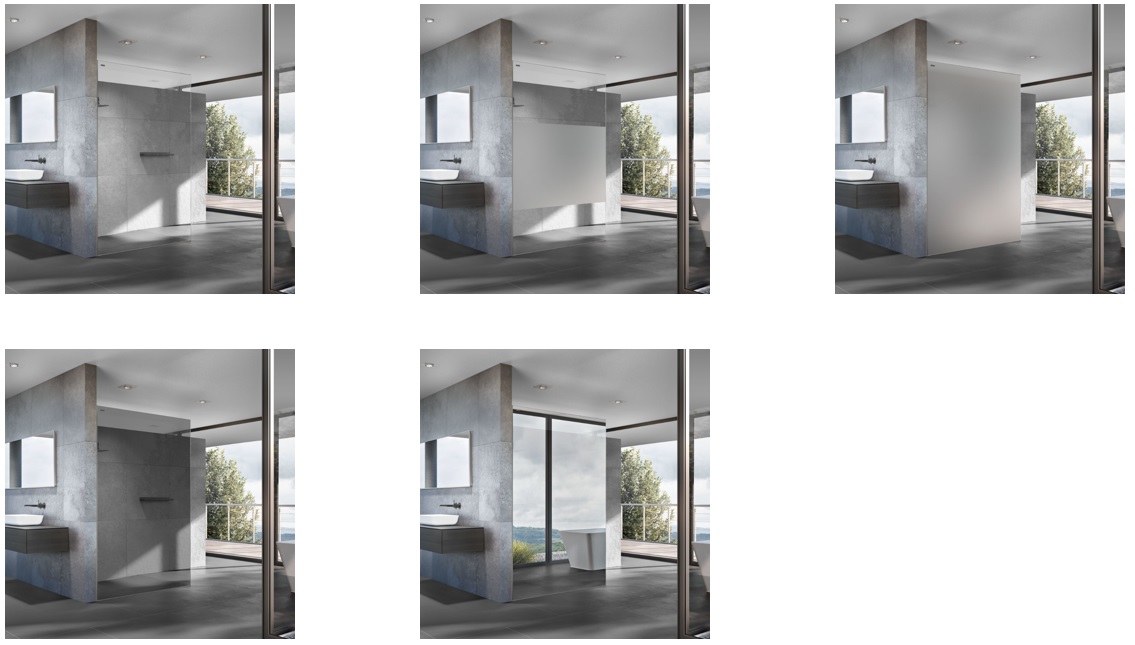 - Варианты стёкол - прозрачное, матовое, частично матовое, тонированное и зеркальное.