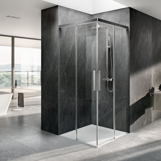 Душевые ограждения с раздвижными дверьми DUSCHOLUX Viva безупречно впишутся в вашу ванную комнату благодаря инновационным направляющим профилям.