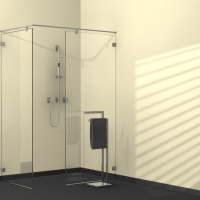 Крупные стеклянные элементы идеально сочетаются в DUSCHOLUX Collection 2 Walk-in с изысканными ручками. Особая шарнирная технология обеспечивает максимальную