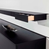 Система наставных шкафов и панелей высотой 40 см. Панели имеют специальные крепежи, прочно зафиксированы на стене, по видимой стороне имеют технологические отверстия для крепления дополнительных элементов (полочки, светильники).