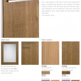 Фасад – гладкий фронт с покрытием из натурального дерева (шпон дуба). Передняя и задняя сторона фронта с вертикальным рисунком в структуре дерева, имитирующий рисунок необработанной древесины - спил. Для дополнительной защиты на верхний слой нанесен PUR - лак. По периметру фасада - кромка, в виде рамки из массива дерева.
