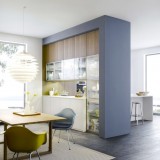 Витражный фасад – широкая рамка из массива дерева, в цвет основного фронта с матовым стеклом.